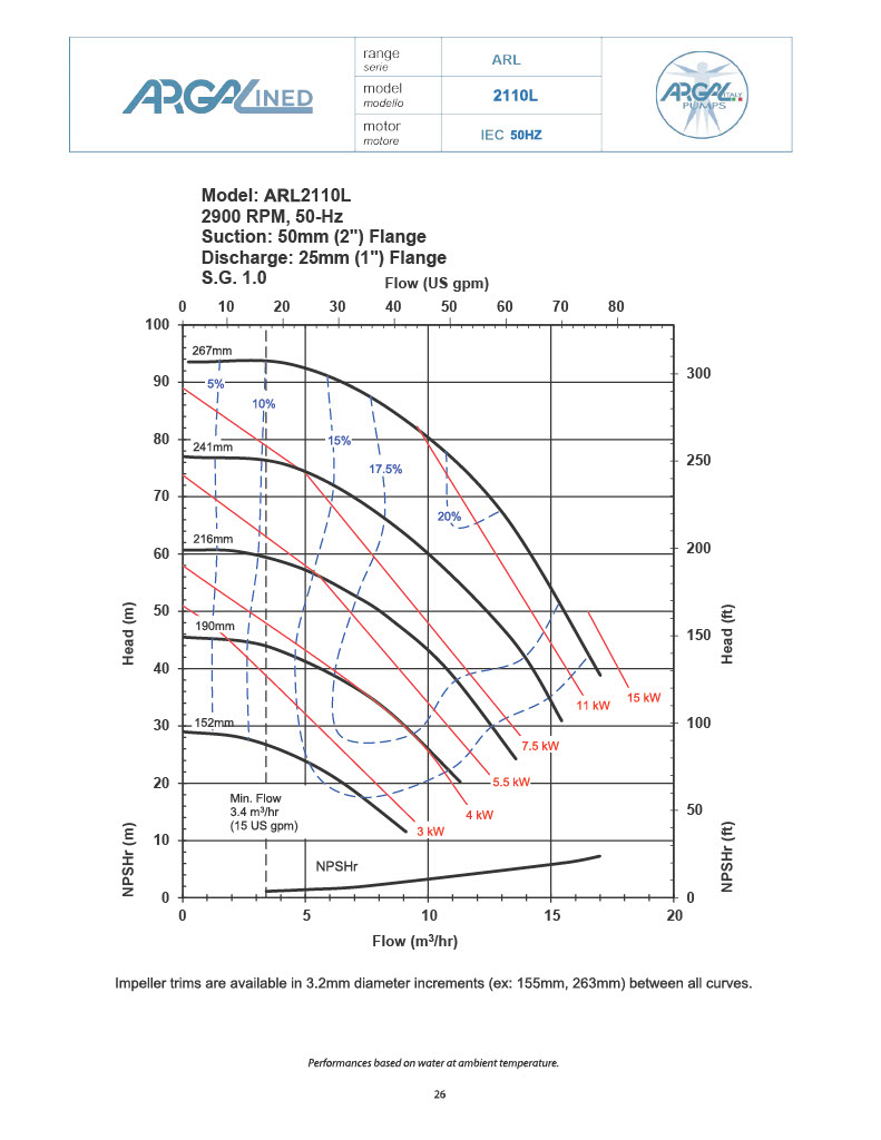 *See Performance tab for individual impeller diameter capability