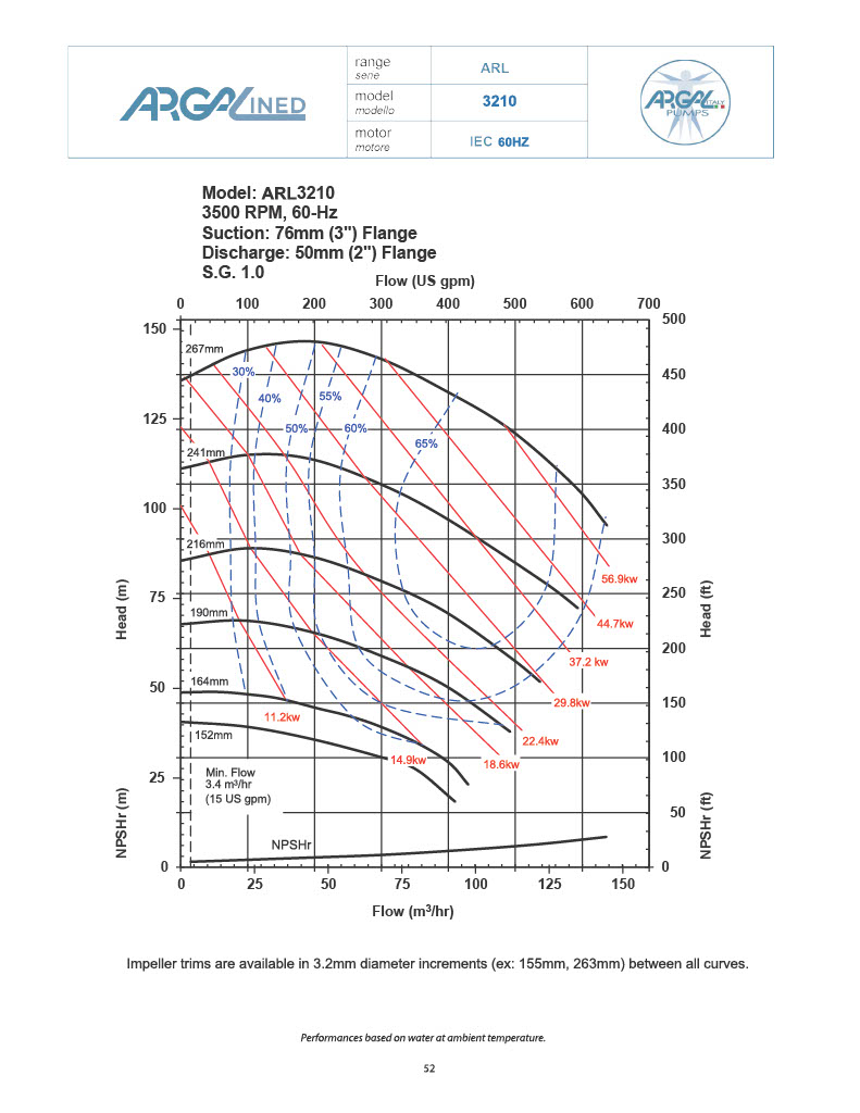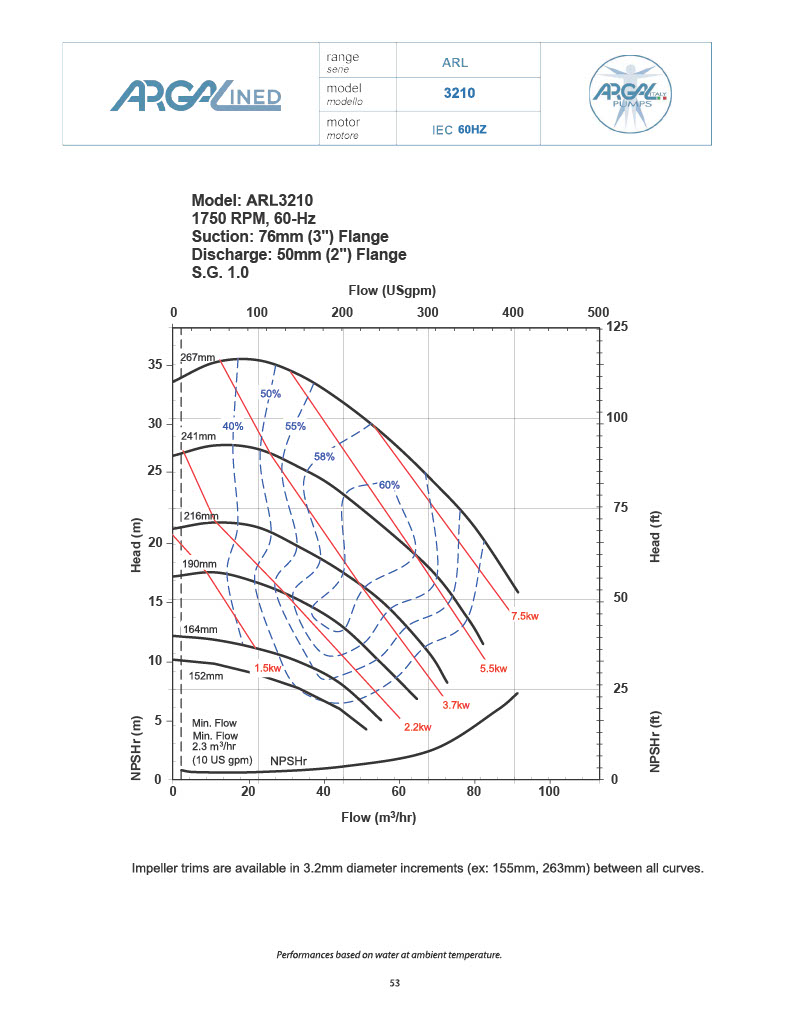 *See Performance tab for individual impeller diameter capability