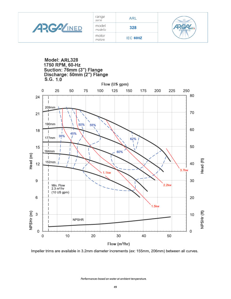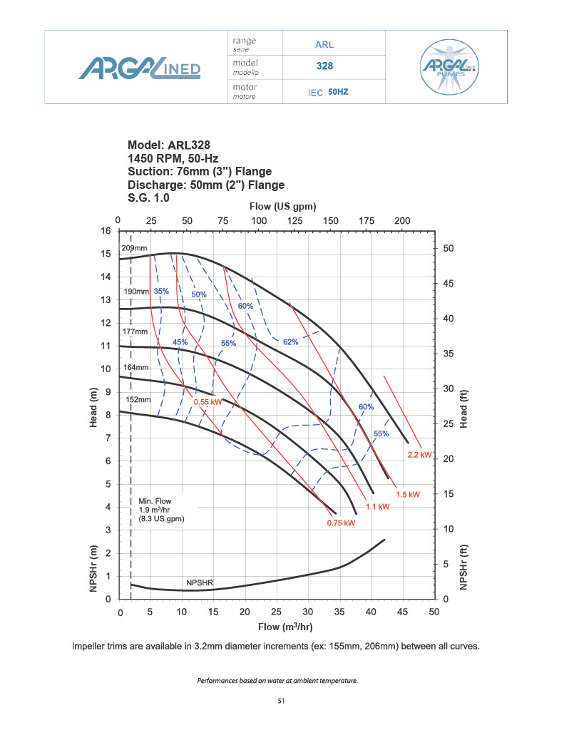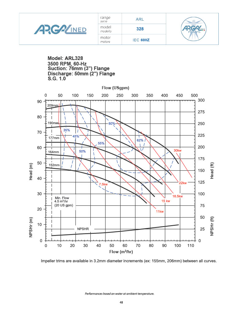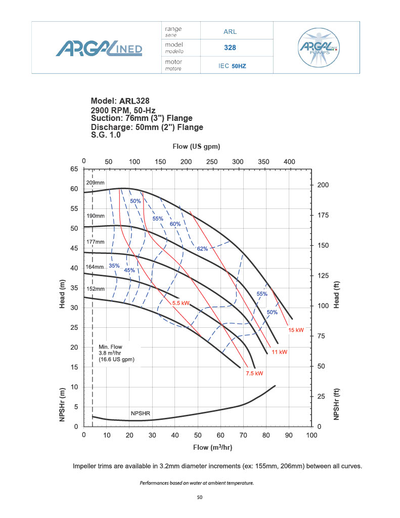 | ARL 3x2x8 | @2900 RPM | @3500 RPM |