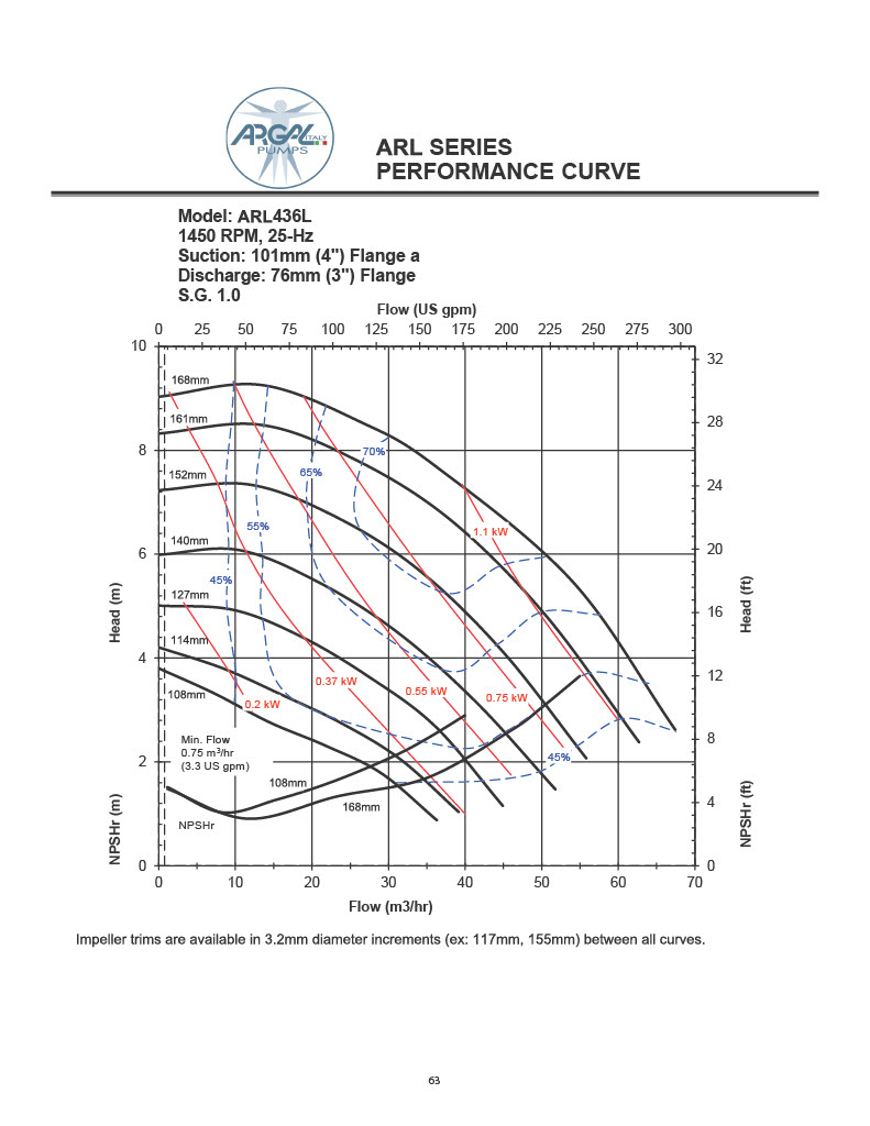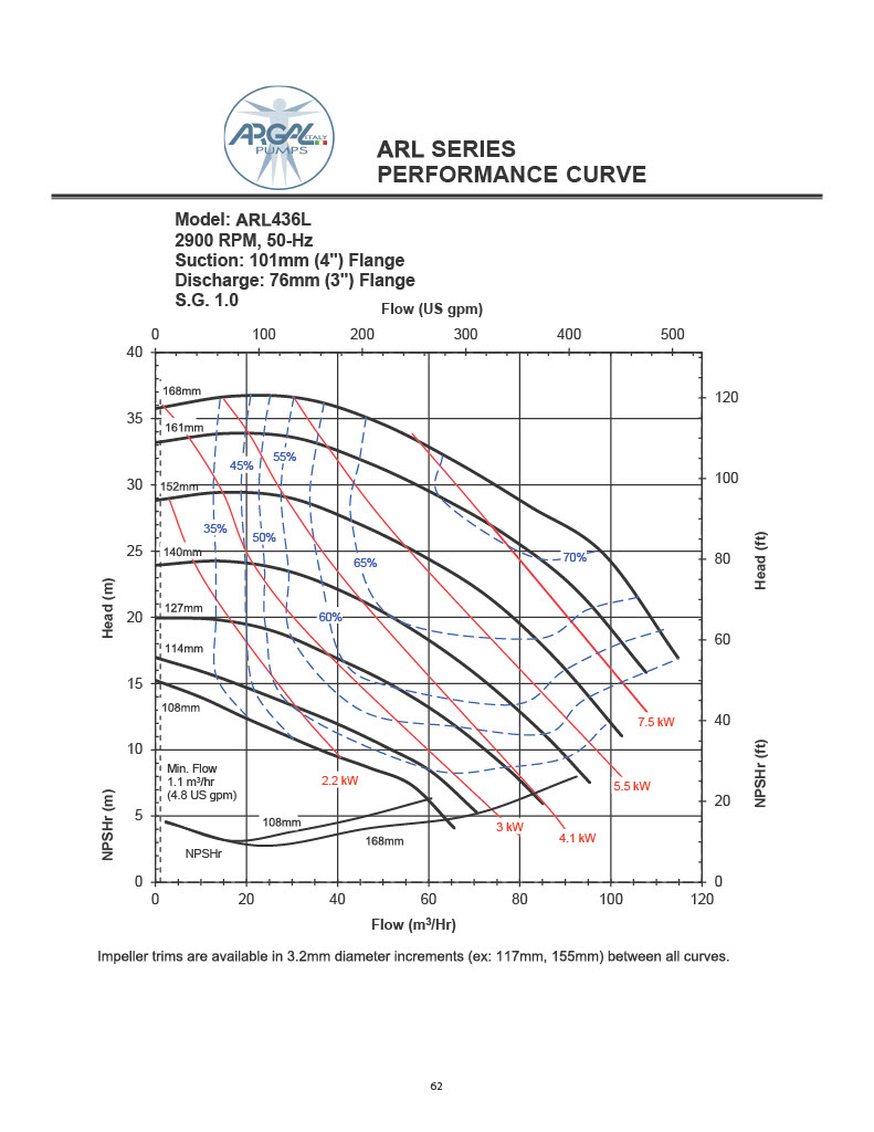 *See Performance tab for individual impeller diameter capability
