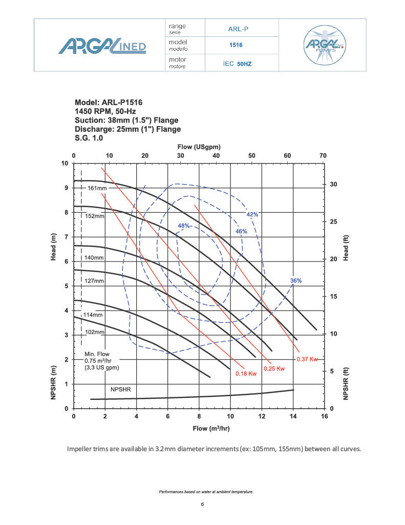 | ARL-P 1.5x1x6 | @2900 RPM | @3500 RPM |