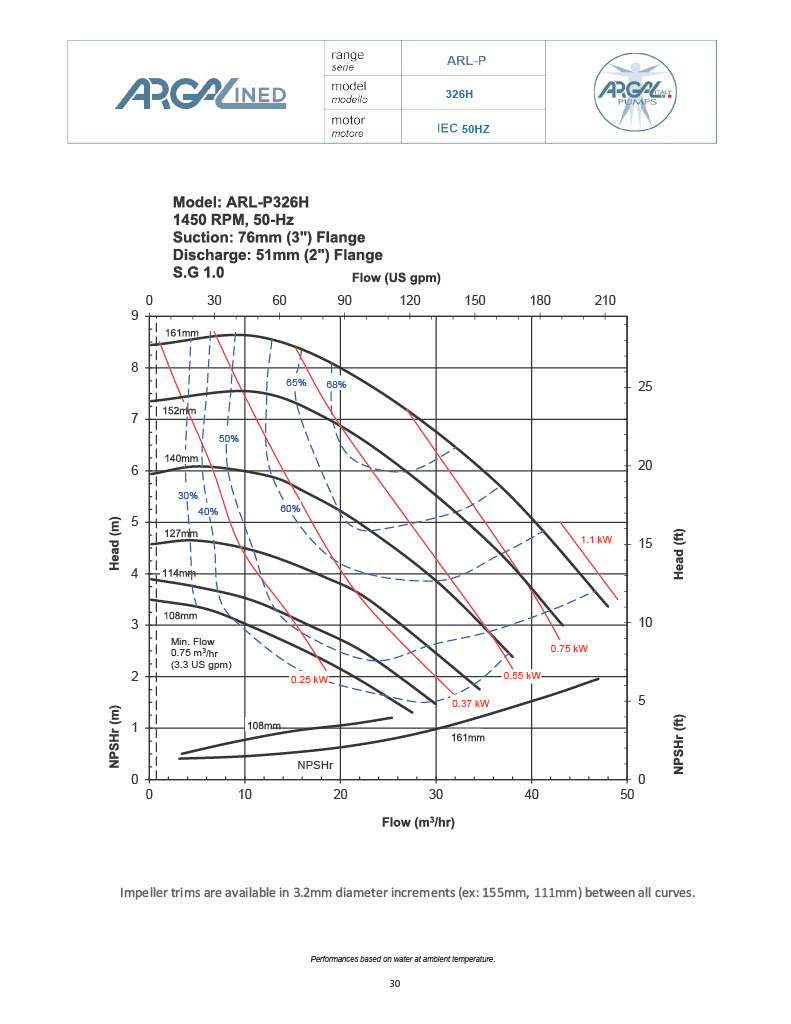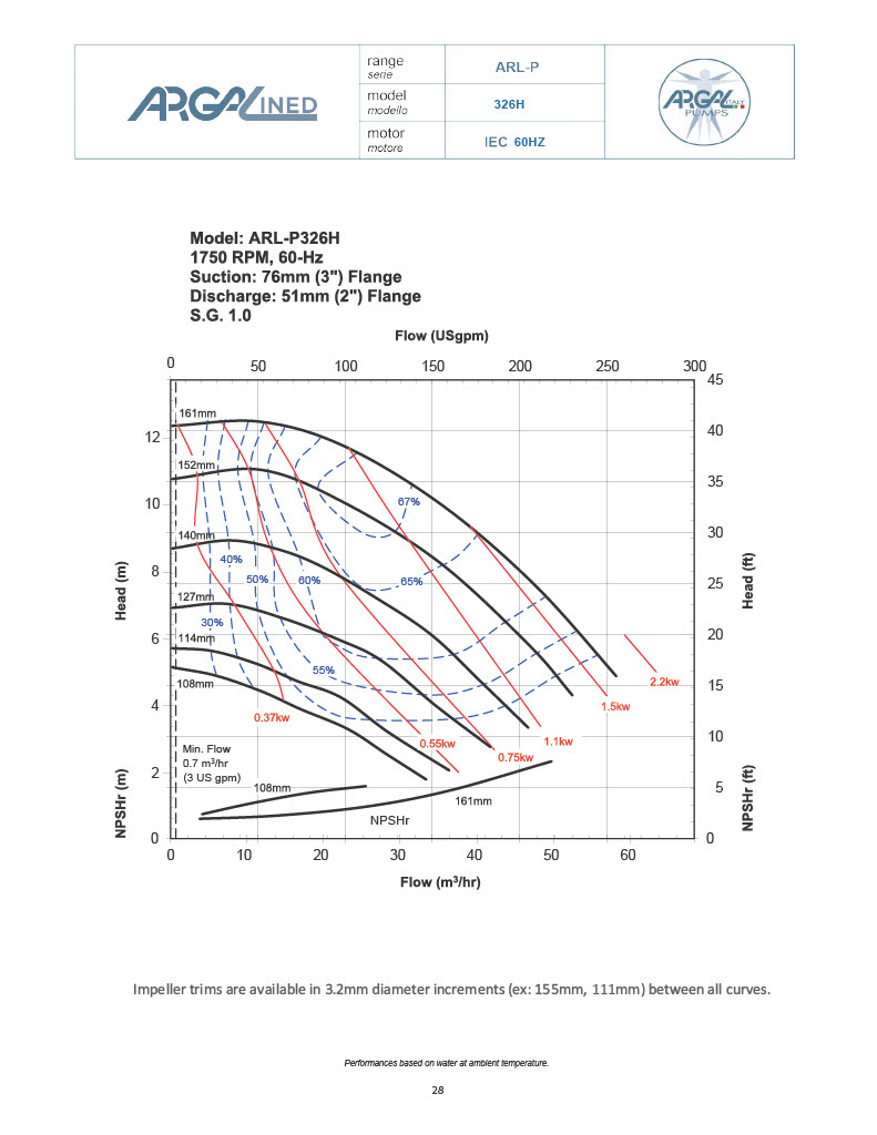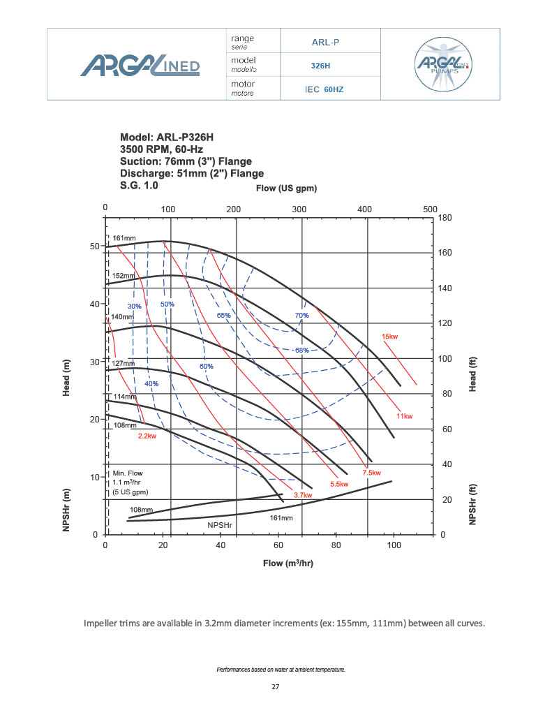 *See Performance tab for individual impeller diameter capability