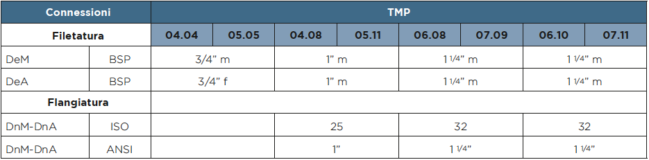 3 combinazioni diverse per i componenti interni liquidi puliti e quelli carichi, leggermente abrasivi, alcalini forti o sali (ipoclorito di sodio) o acidi (cromico, nitrico, solforico, ecc.)